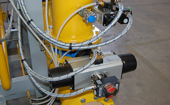 空分設(shè)備是煤化工行業(yè)、石化行業(yè)在生產(chǎn)制造過(guò)程中使用的重要儀器設(shè)備,其運(yùn)作機(jī)械原理是實(shí)現(xiàn)對(duì)空氣的降溫冷卻,同時(shí)以增壓方式讓空氣的體積變小、轉(zhuǎn)化為液態(tài),根據(jù)空氣中各組成氣體之間的沸點(diǎn)差異,讓液化物與氣體充分接觸并發(fā)生反應(yīng),在熱質(zhì)交換原理的作用下,實(shí)現(xiàn)高純度氣體的分離。得銳自動(dòng)化公司閥門在空分設(shè)備上的應(yīng)用主要分為兩大塊,大型空分設(shè)備上采用OMAL歐瑪爾的高頻、快速特性的氣動(dòng)執(zhí)行器,在小型空分設(shè)備上使用的是OMAL歐瑪爾氣動(dòng)梭閥和角座閥。